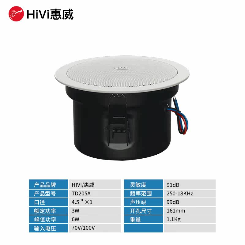 Hivi Whi Wai TD205A Constant Pressure Public Broadcast Suction Top Horn Background Music Bathroom Waterproof Suspended Ceiling Acoustics