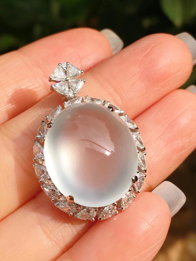 Natural Burmese jadeite a cargo jade pendant ring women's ice species 18K inlaid egg surface transparent necklace small piece