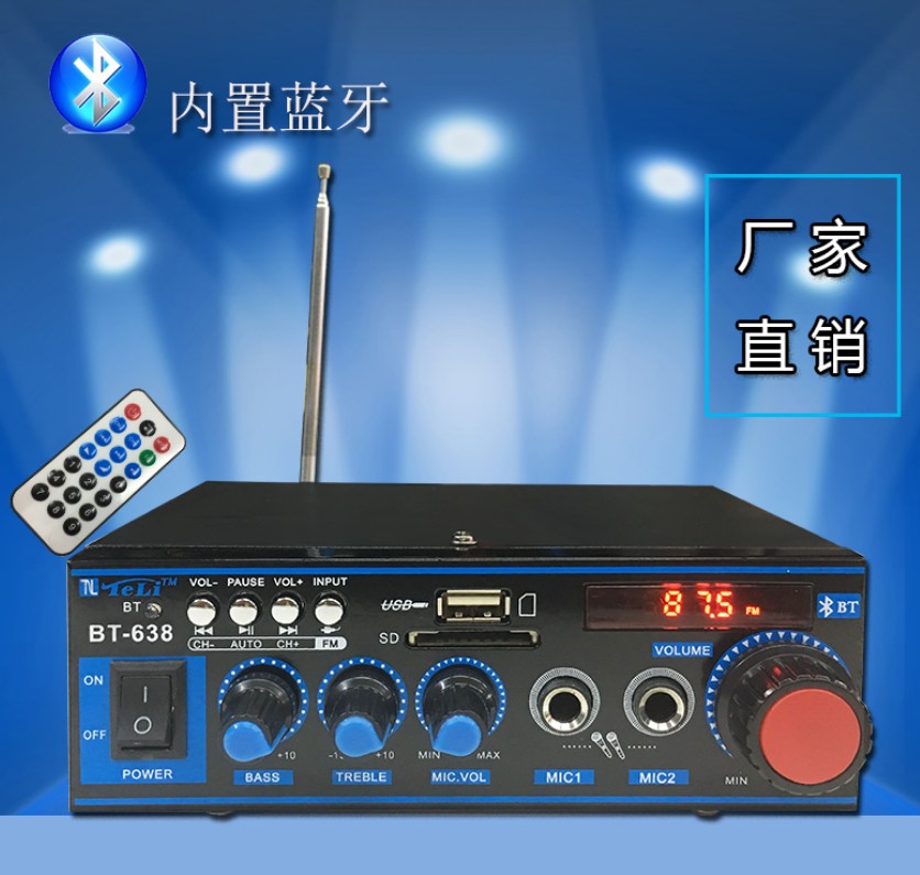 BT-806 sound power amplifier BT-638 home on-board 12V power amplifier radio USB Bluetooth power amplifier