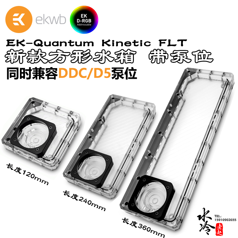 EK-Quantum square water tank with pump position compatible with DDC D5 Mirage 5V 120240360 Pump box integrated