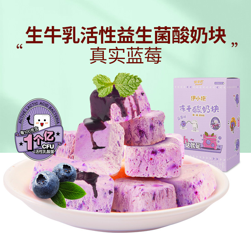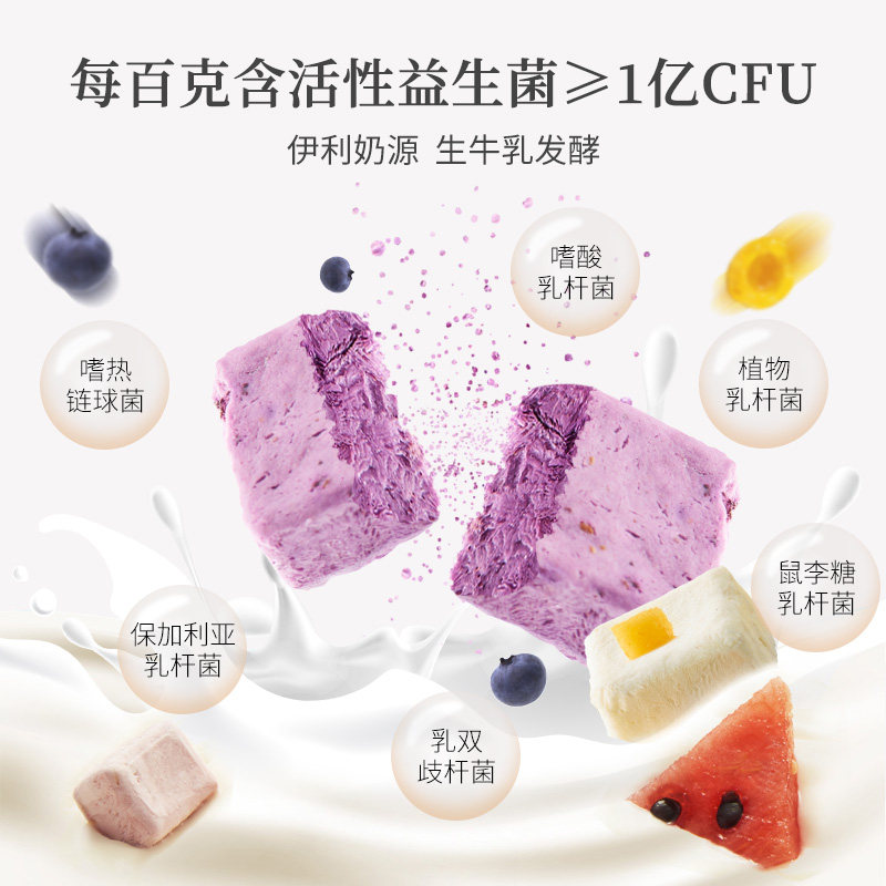 Yili new food machine freeze-dried lactic acid bacteria yogurt cube gnocchi dry eat blueberry flavored children's healthy snacks