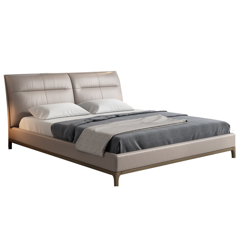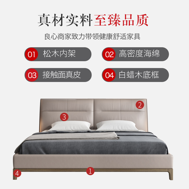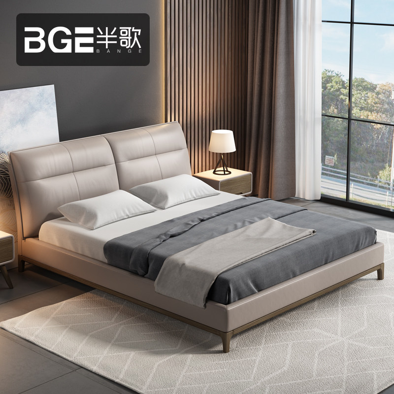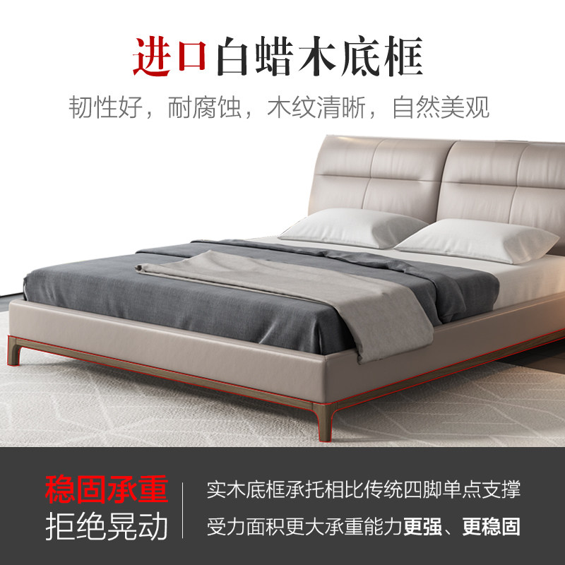 Half-song Nordic leather bed solid wood modern simple 1.8 meters double bed m light luxury master bedroom head layer cowhide soft bag bed