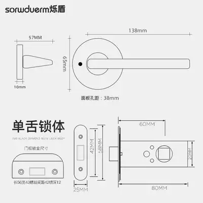 Shuo shield powder room door lock indoor bathroom toilet single tongue wooden door lock Golden mute keyless spherical three-bar lock
