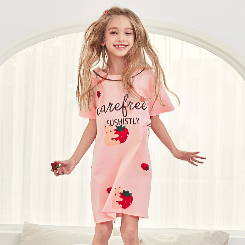 Fentencia children sleeping dress girl short sleeve thin section pure cotton sweet and beautiful cartoon little princess CUHK dresses dress pyjamas