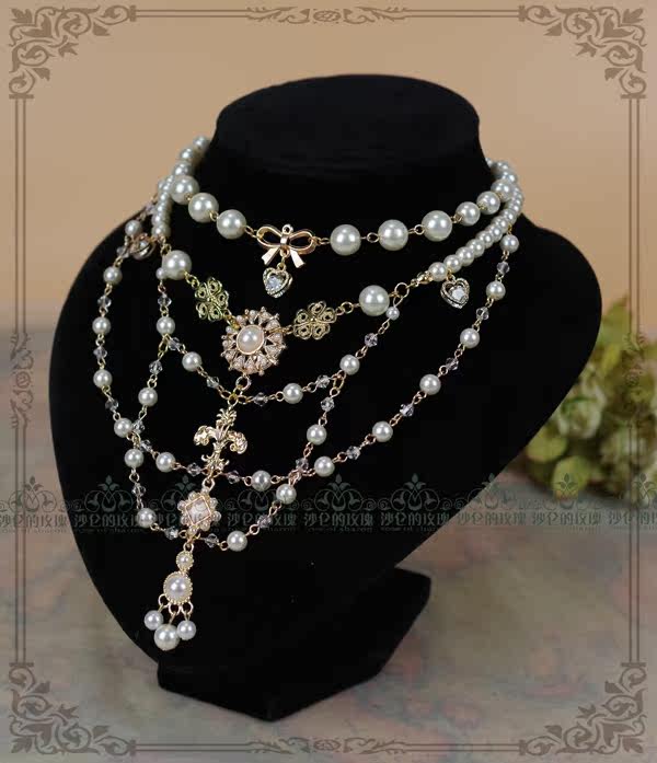 Original * white dance music II* gorgeous crystal pearls necklace Lolita accessories Accessories Deliver Ear Accessories