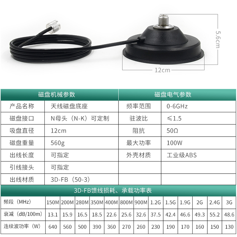 N female car suction cup base 12CM large disk outdoor waterproof belt 3D-FB feeder strong magnetic radio intercom 50-3 extension line can be connected to the FRP car whip-shaped driving school