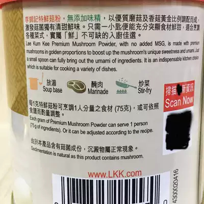 Hong Kong version of Lee Kum Kee Special Fresh Mushroom Powder 200g Mushroom soup base Seasoning for cooking Stir-fry Vegetarian Sweet and fresh