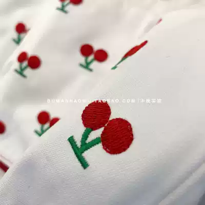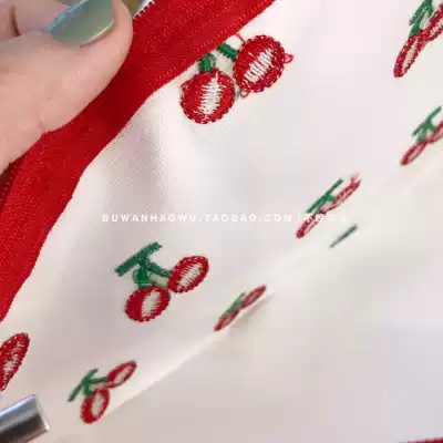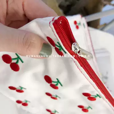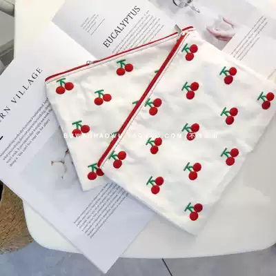 ins good things) Cute cherry embroidered canvas cosmetic bag storage bag ()