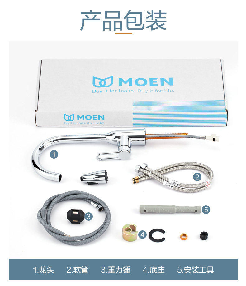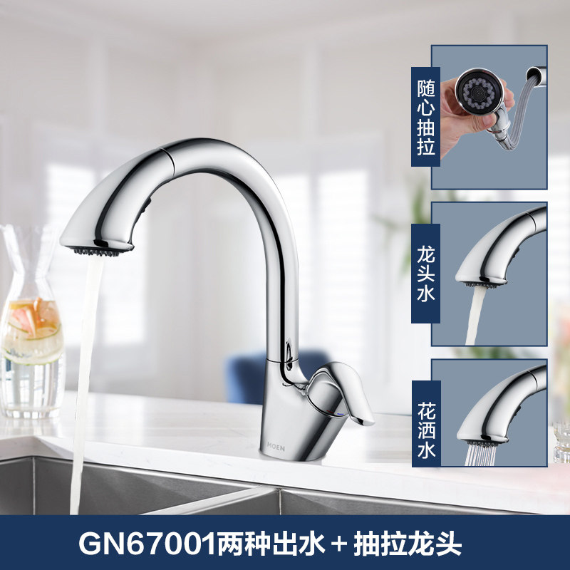 Moen Kitchen faucet pull-out cold and hot wash basin sink bowl pool rotating all copper household 68002
