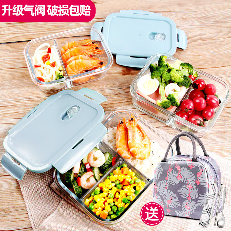 Heat-resistant glass lunch box can be microwave heating refrigerator special office workers fresh-keeping fruit with lid sealed lunch bowl