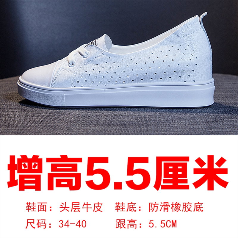 Hong Kong 2022 spring and summer new real leather inner heightening small white shoes female breathable 100 lap hollowed-out shallow mouth One foot pedal white shoes