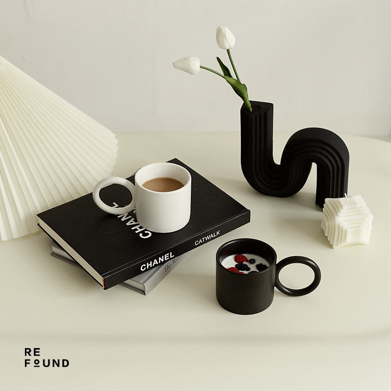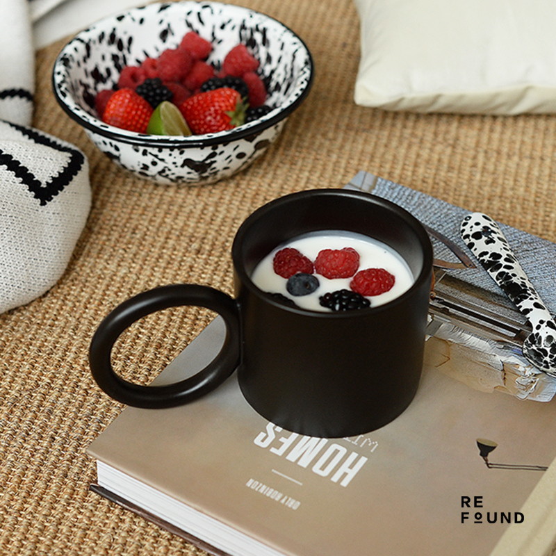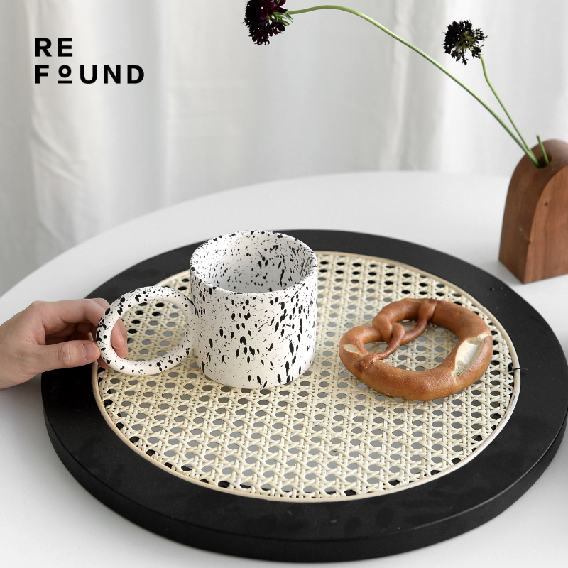 ReFound niche black and white ink dot big round handle coffee cup Nordic mug fashionable design ceramic water cup
