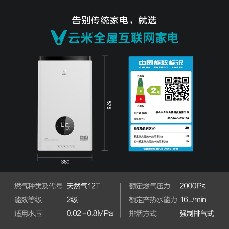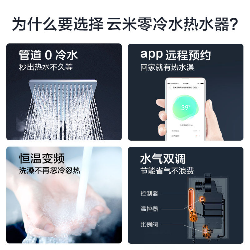 Yunmi zero cold water gas water heater with return water circulation constant temperature 16L liter natural gas strong discharge mobile APP