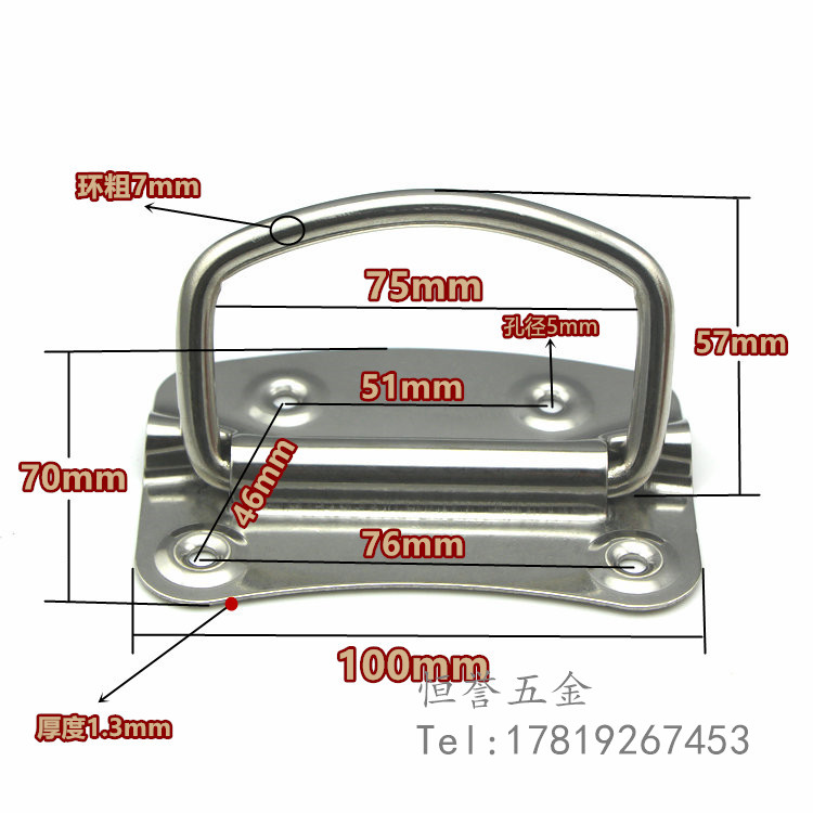 Thicken stainless steel industry handle wooden box folding activity handle iron handle handle box ring hand handle hand side handle