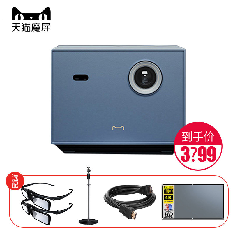 Tmall Magic Screen U2 Projector Household U1 U1 Upgrade Bedroom Living Room Entertainment 1080p UHD Android Phone Connect 3D Wireless Screen Large Screen Smart Home Theater
