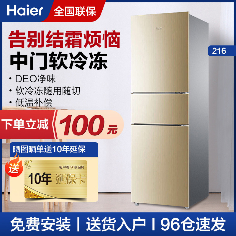 Haier refrigerator small household three-door energy saving 170 216 218L liter air cooled frost-free official flagship store EC5U