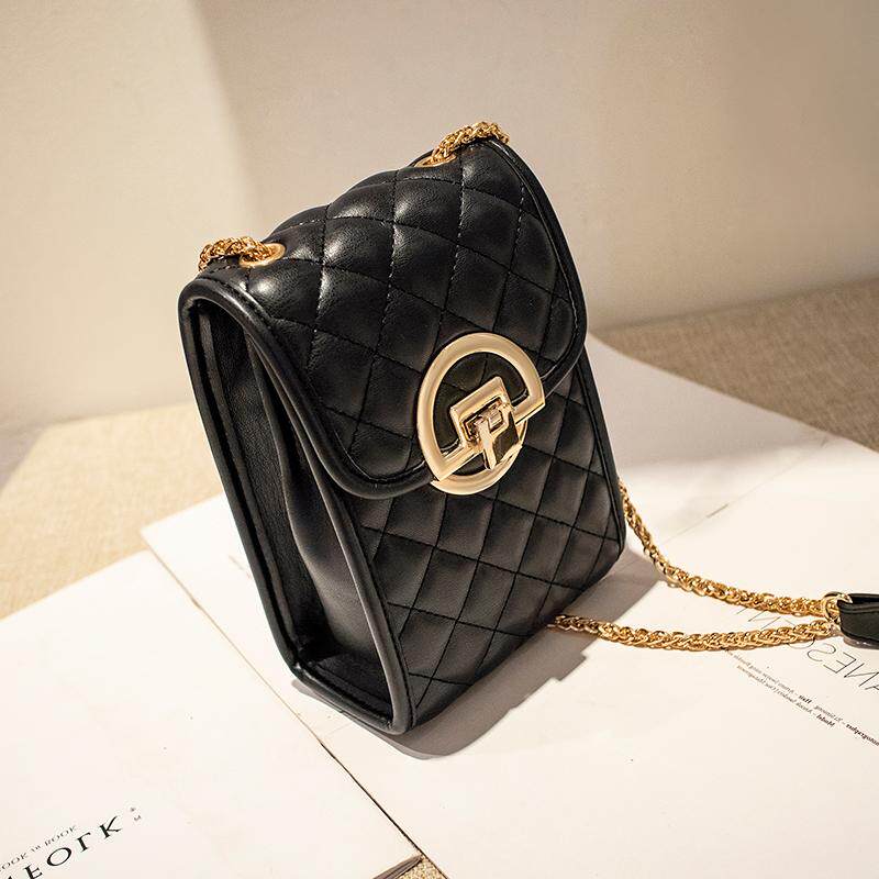 Counter 2021 three-layer small bag new Korean wave mini mobile phone bag diamond grid small fragrant soft leather messenger bag women's bag