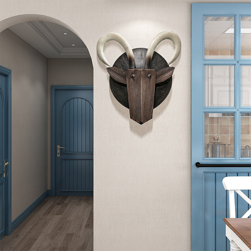 European-style sofa wall decoration bedroom wall metal light luxury wall hanging background decoration living room wall decoration bull head pendant