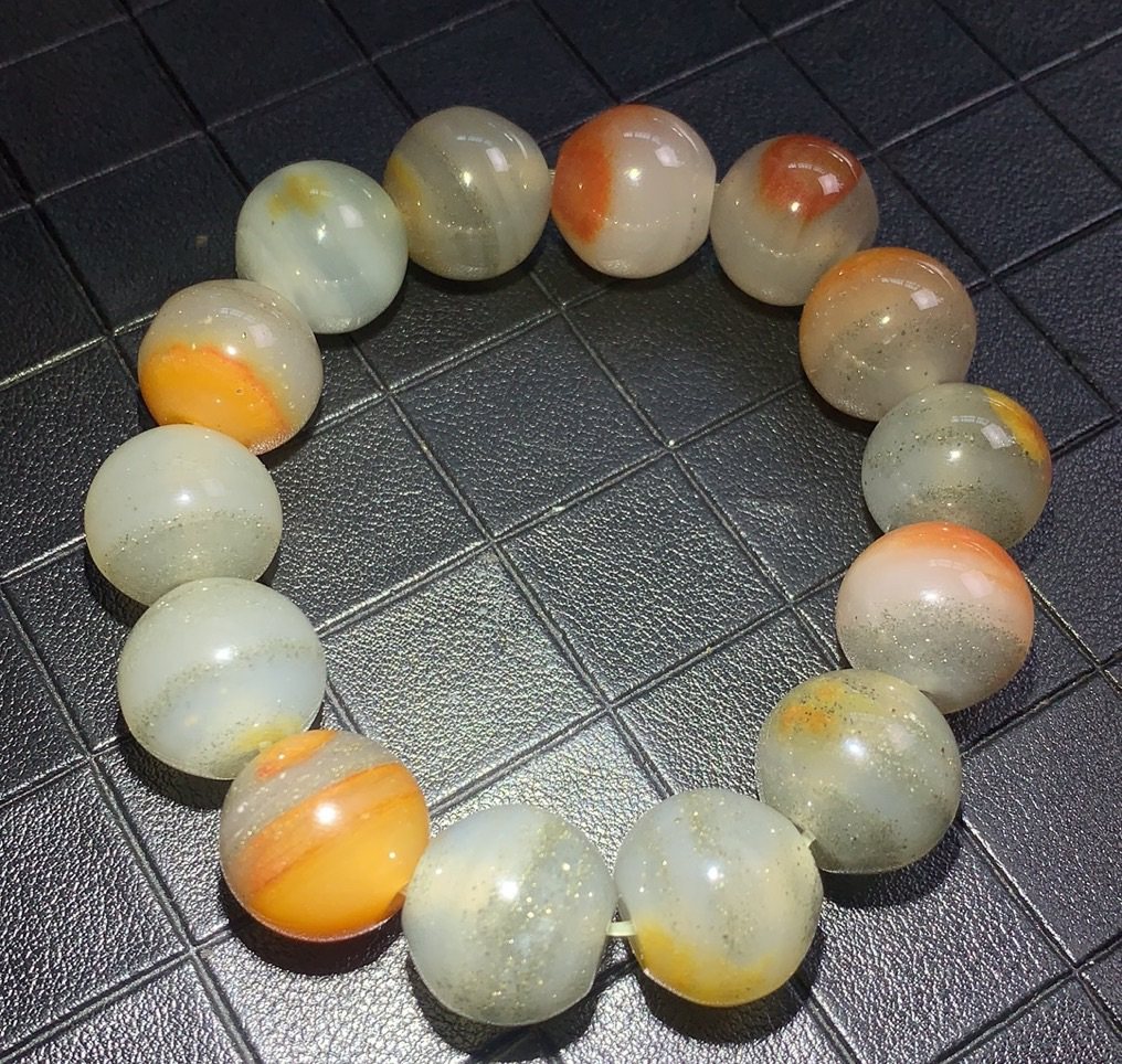 Yang Yujia Yunnan Natural Yellow Dragon Jade Eggplant Mountain Three-color Ice Sand 16MM Men's and Women's Bracelet Certificate