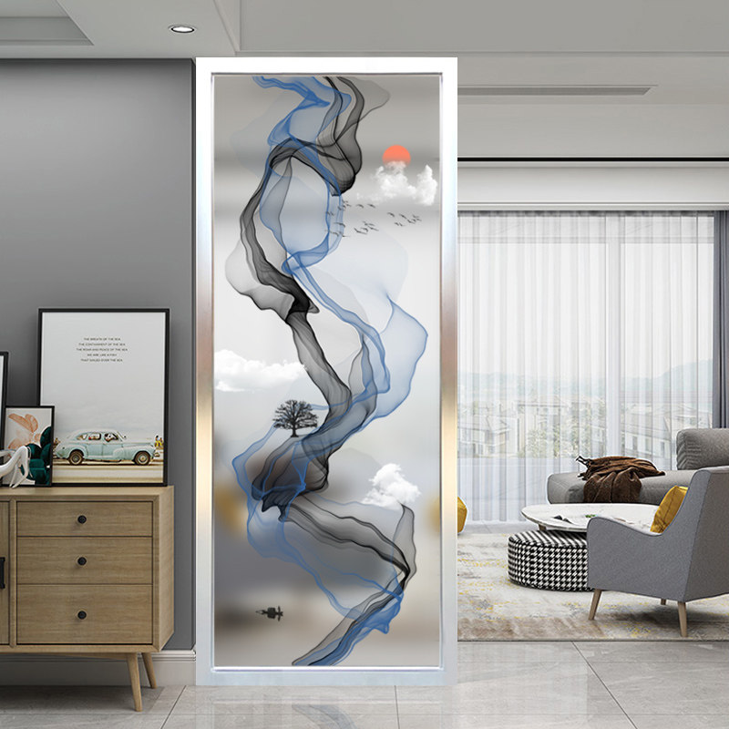Chinese modern minimal art glass screen window room entry to the seat partition wall decorated double-sided frosted abstraction painting