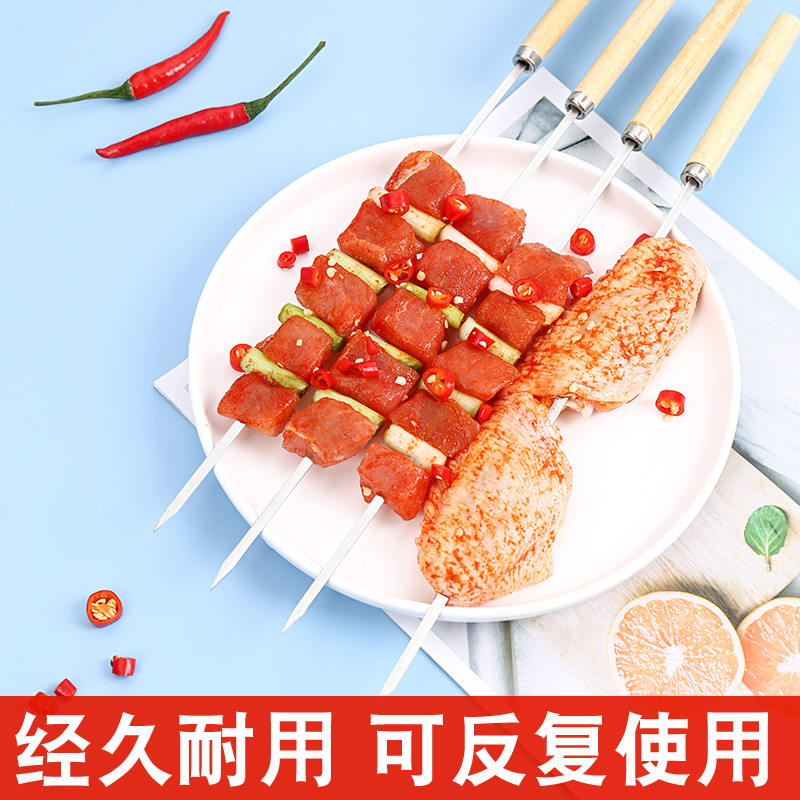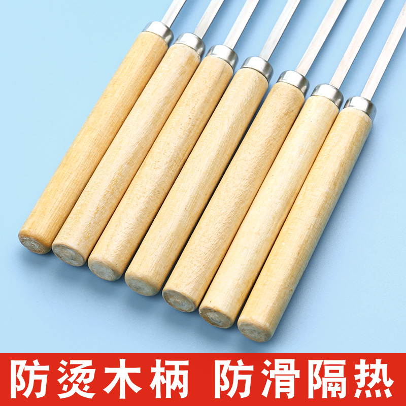 Stainless steel wooden handle barbecue stick mutton skewers barbecue barbecue utensils skewers iron stick flat sign accessories barbecue needle