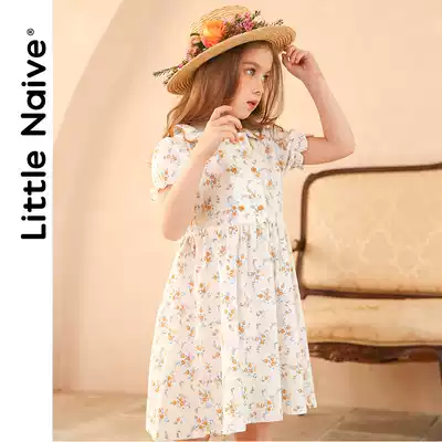 LitteNaive girls White retro Floral dress summer 2021 new children's pure cotton A-line skirt