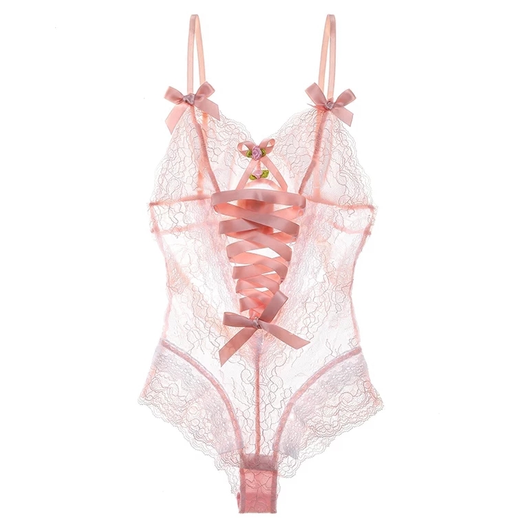 (S T) Sweetheart baby girl pink tender bow jumpsuit sexy lingerie court retro sexy pajamas