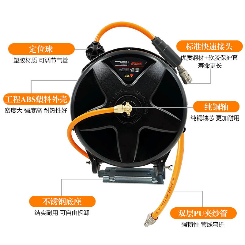 Air drum automatic telescopic tube reel trachea retractable auto repair water drum electronic drum high-pressure suspension double-tube tube collector