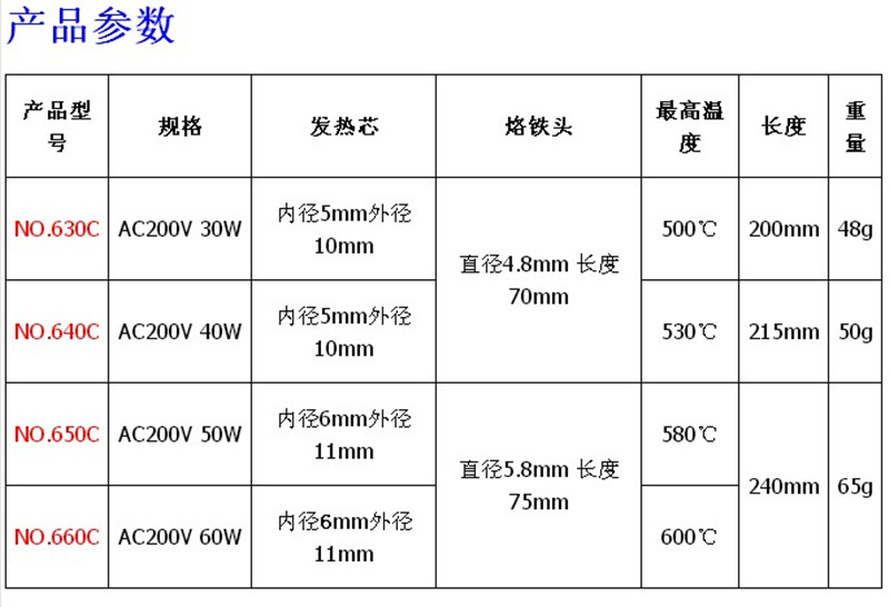 660 60W soldering iron 640 40W soldering iron 630 30W