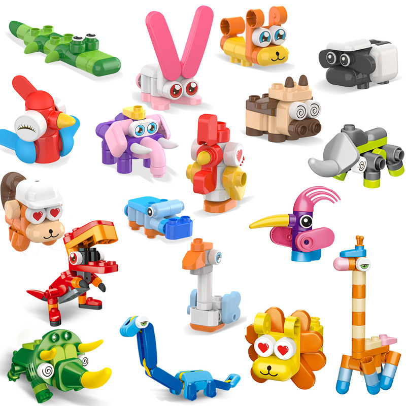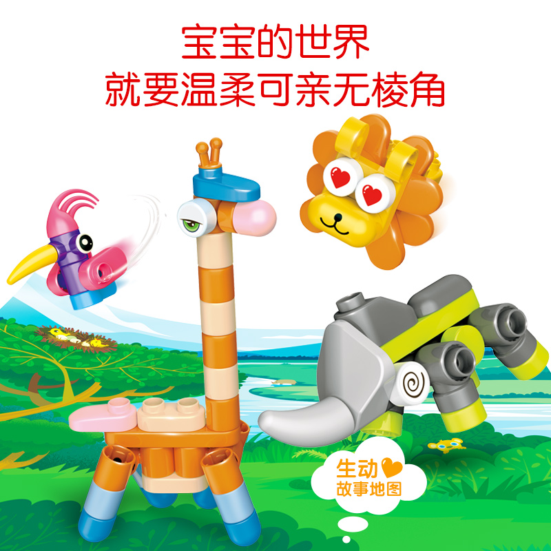 Blue can put together building blocks farm grassland forest dinosaur friends Variety Blue can puzzle assembled toys