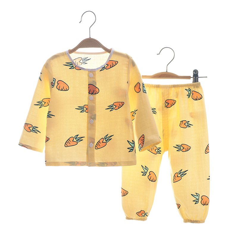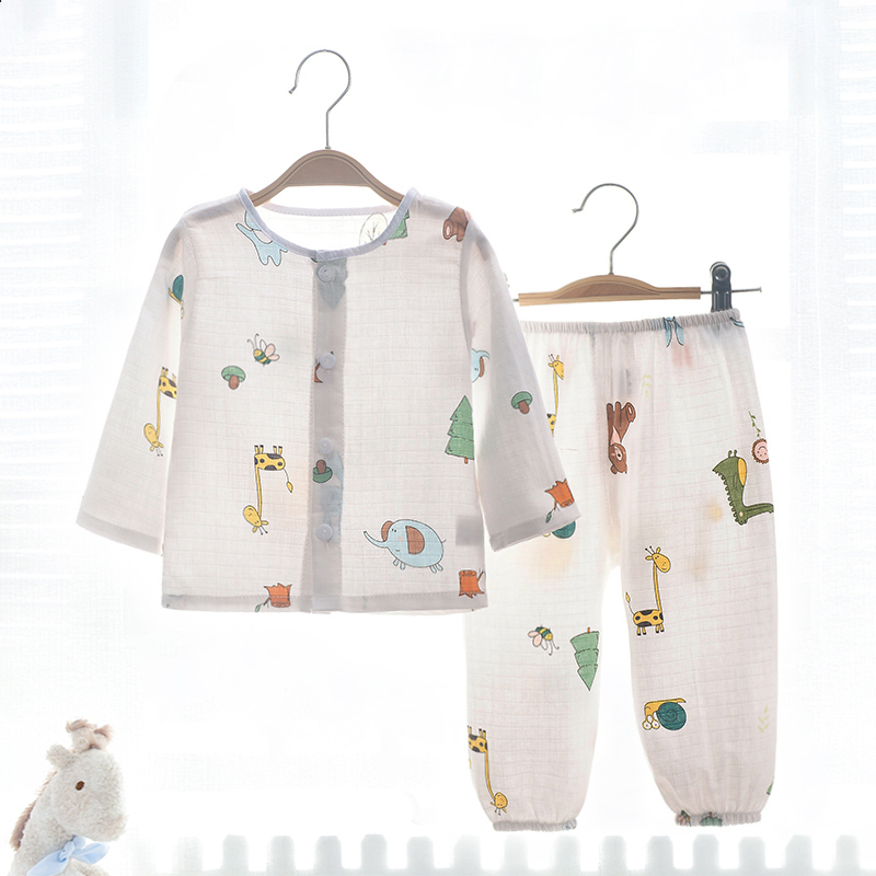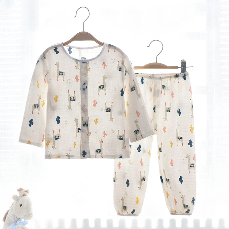 Boy Sleepwear Thin Section Summer Spring Autumn Pure Cotton Boy Girl Child Air Conditioning Suit Home Clothing Gauze Pyjamas children