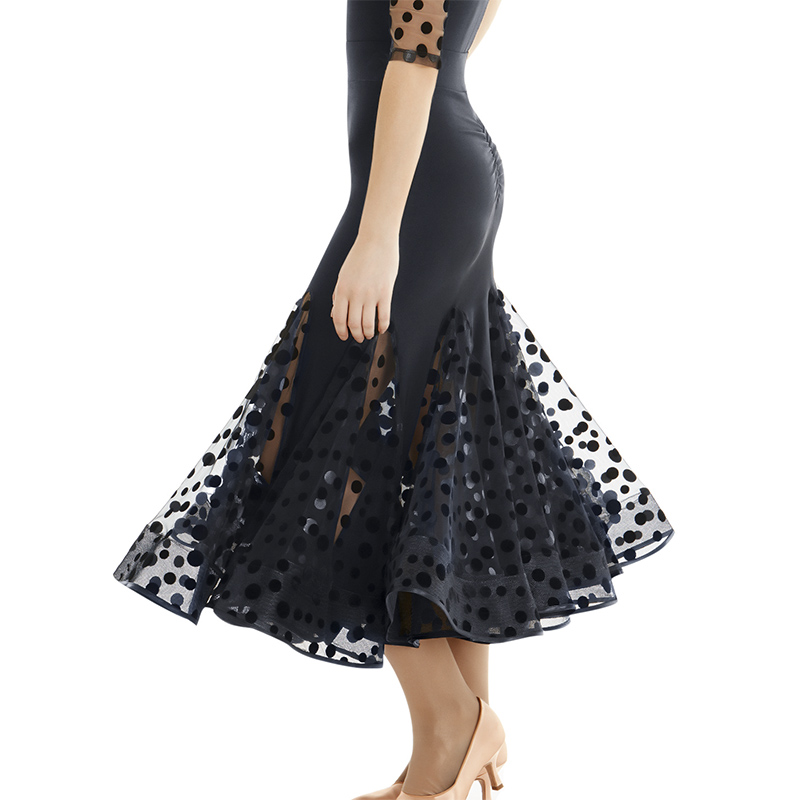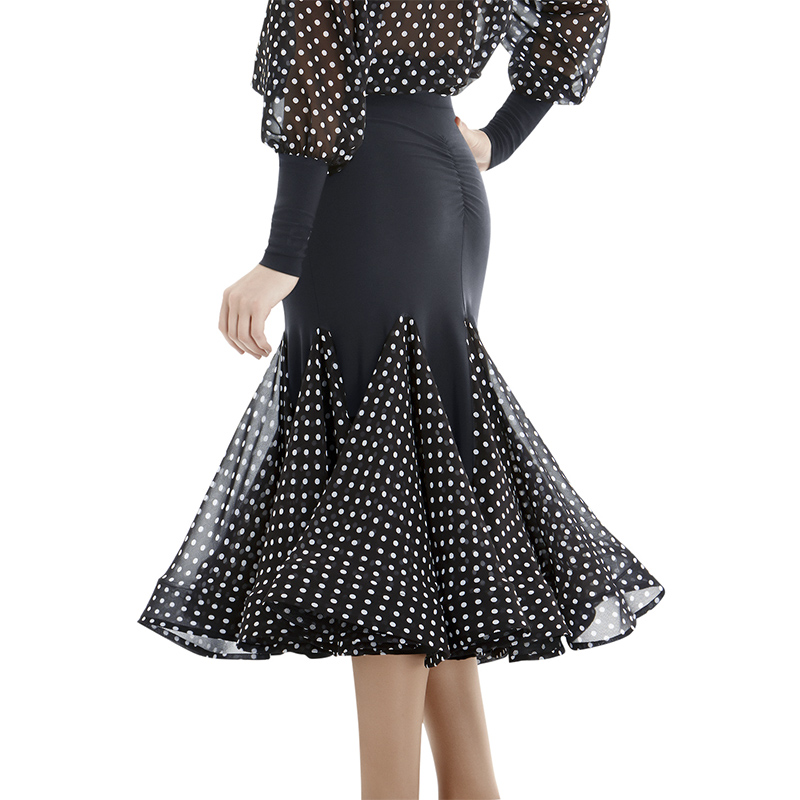 Modern dance new polka dot skirt short GB dance ballroom dance chiffon wrapped hip fishtail large pendulum waltz skirt