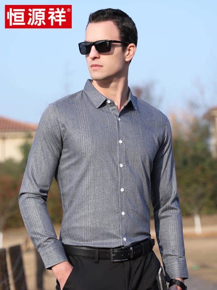 Hengyuanxiang autumn new shirt middle-aged business lapel thin men's fashion vertical stripes dad long-sleeved shirt