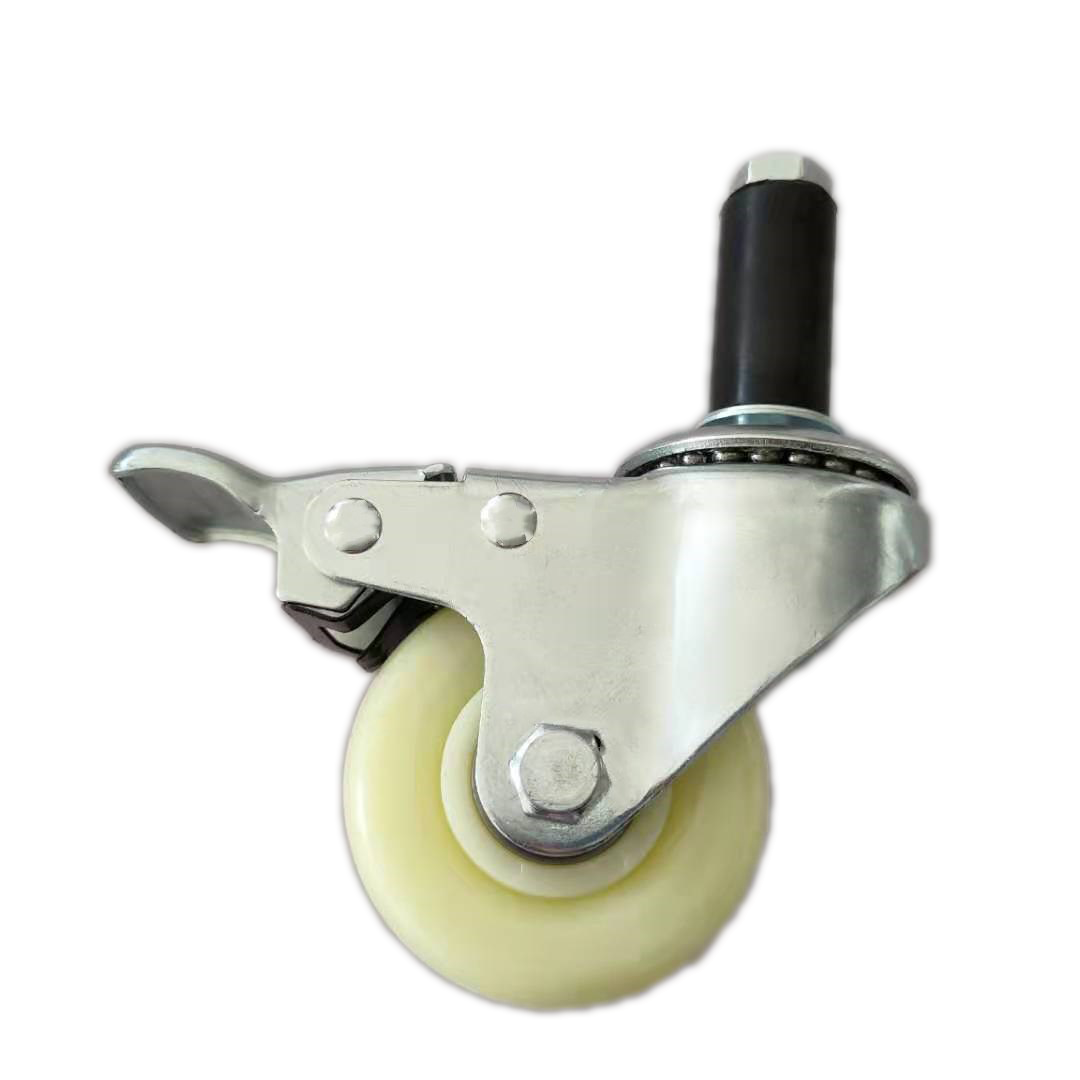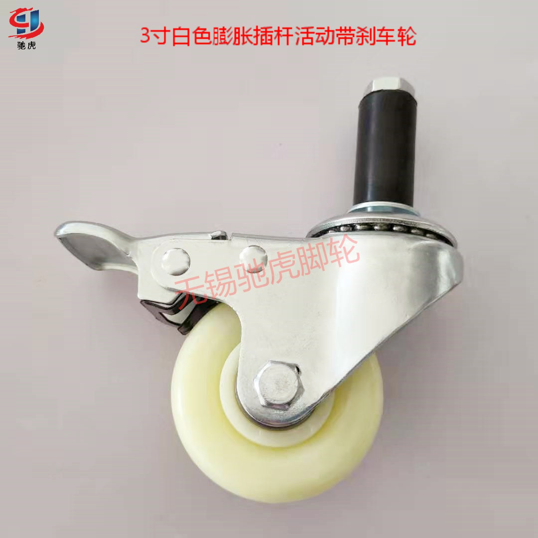 3-inch inserted bar universal trundle 4 inch puffy white nylon directional wheel universal with brake lean pipe composite wheel
