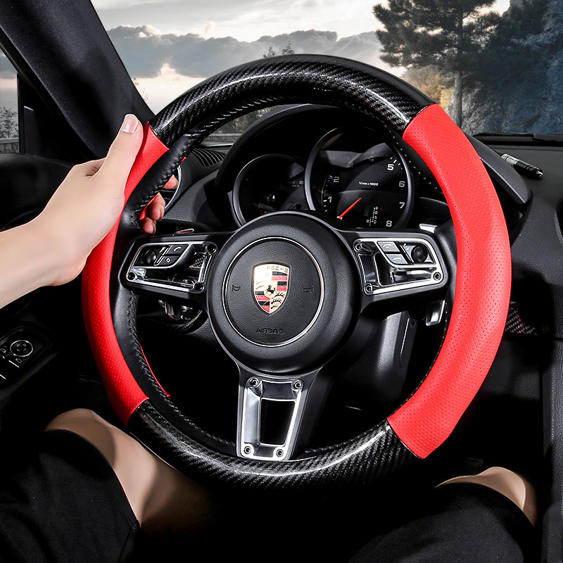 Porsche Steering Wheel Cover (Carbon Fiber Pattern Red) New Arrival