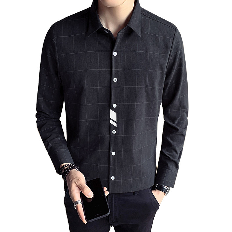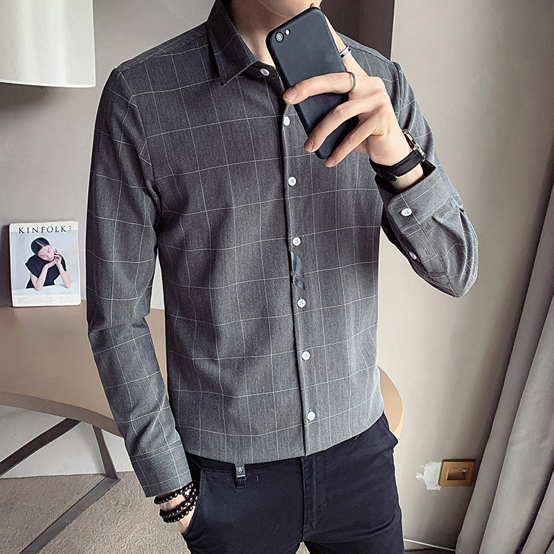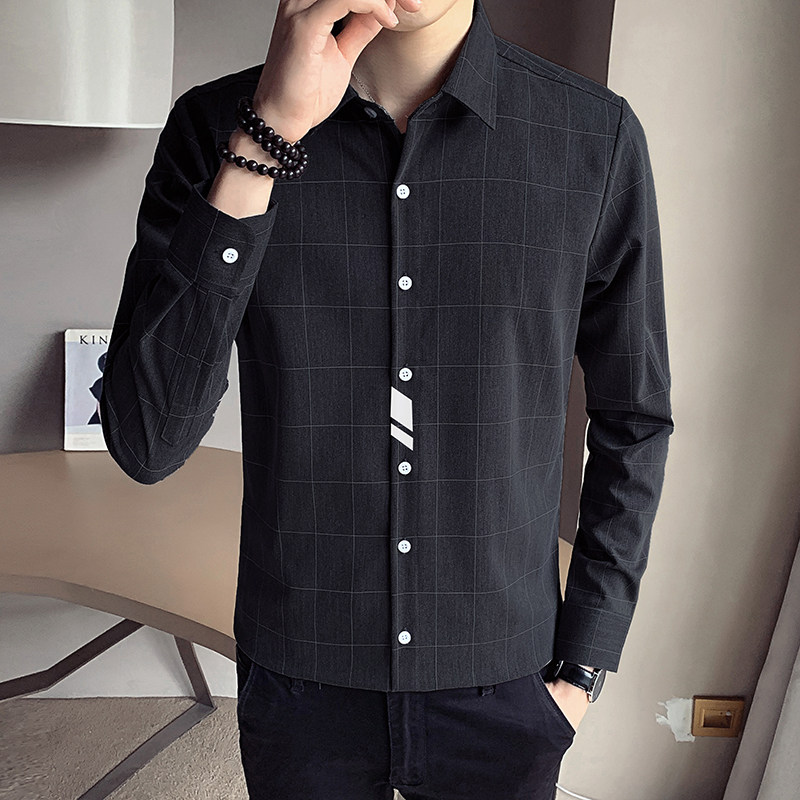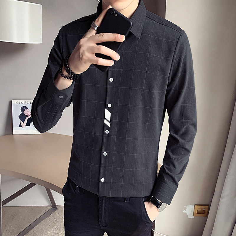Shirt men's spring and autumn season streaks in the shape of a Korean version Trend handsome and long sleeves Shirt Function Casual Blouse Boom