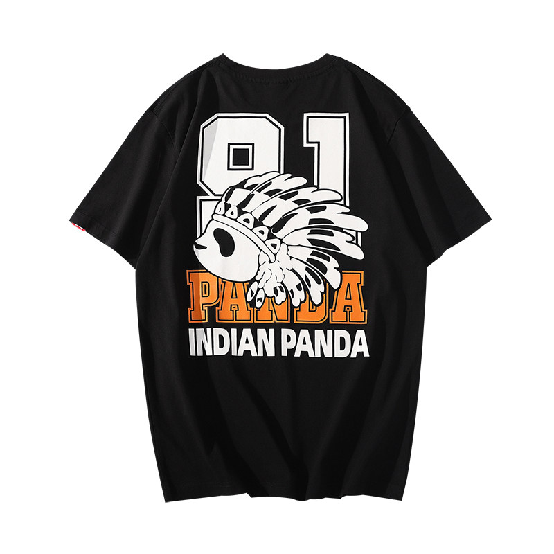 Panda Group India Cartoon Chief Panda Male T-shirt Casual Jersey Short Sleeve Pure Cotton Street Tide Card Female Half Sleeve