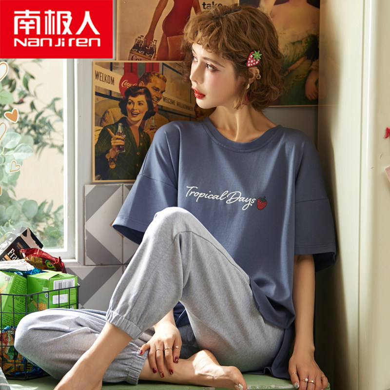 South Pole Sleepwear Women's Summer Short Sleeve Long Pants Pure Cotton Two-piece Suit Korean Version Freshener Students Can Wear Home Clothing