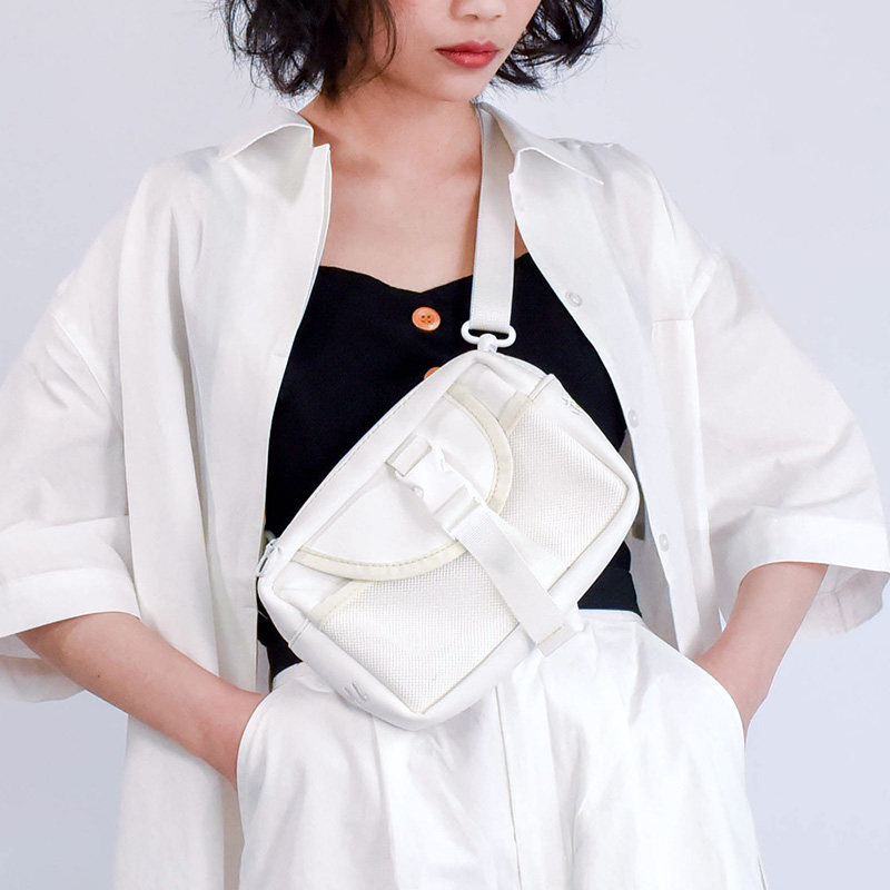 NULL original tooling style messenger bag cool personality trend embroidery leather waist bag street ins chest bag green