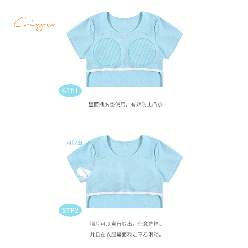 Special words rain girl care female big boy custom chest cushion detachable knitted cotton short sleeve t-shirt inside and outside