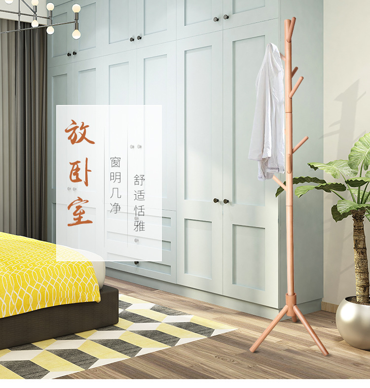 Net reddits solid wood clothes hat rack floor hanging clothes hanger Easy bedroom home single-pole clothes bag set of things brief modern