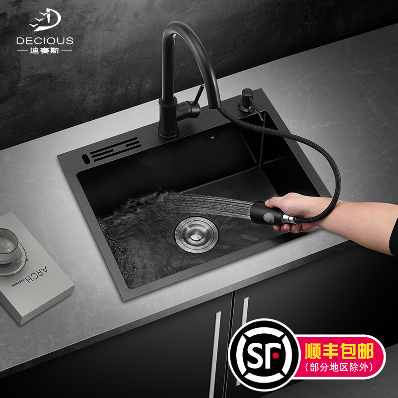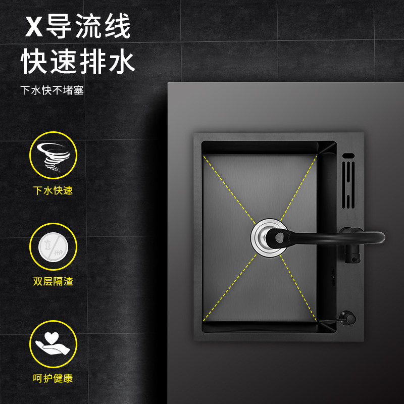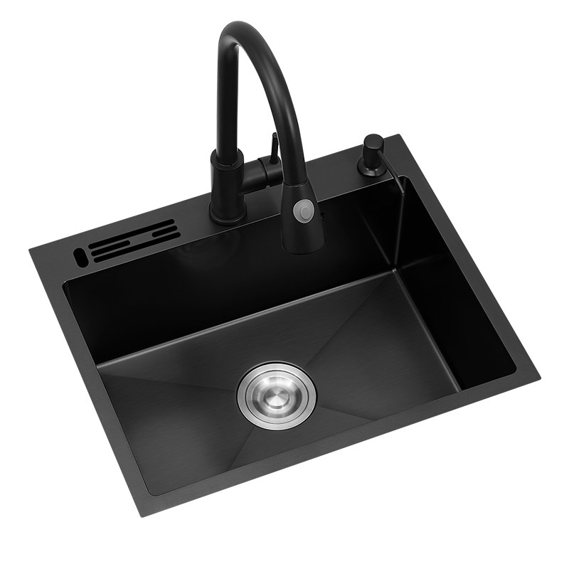 Nano black sink single sink with knife holder kitchen handmade large 304 thickened stainless steel sink sink