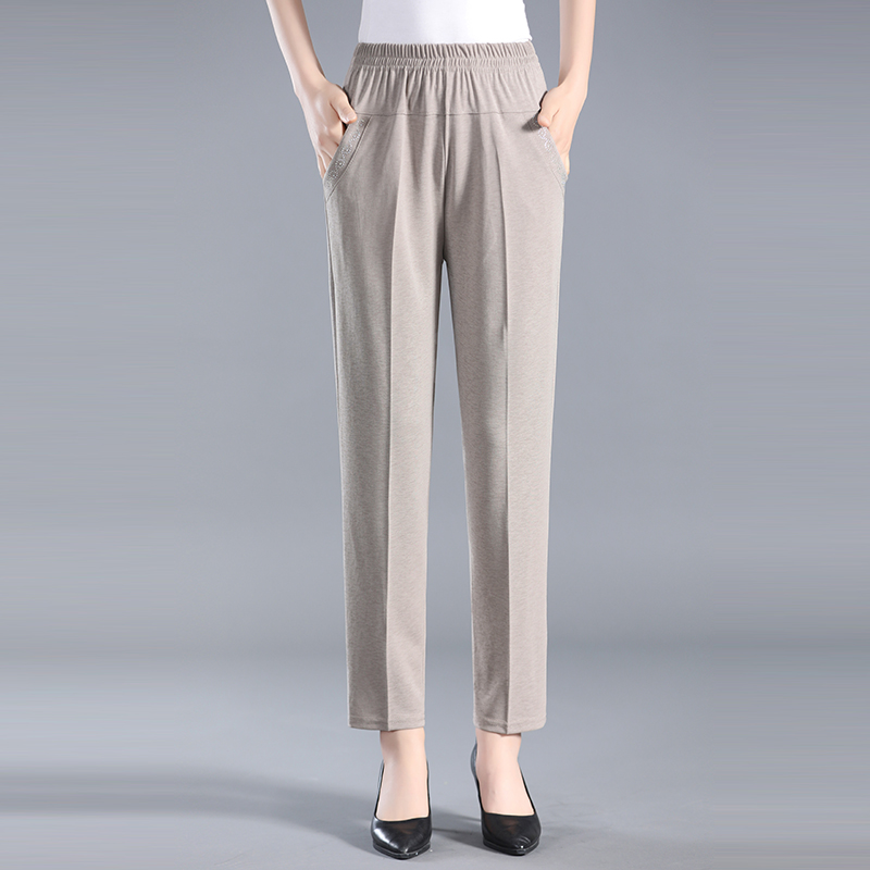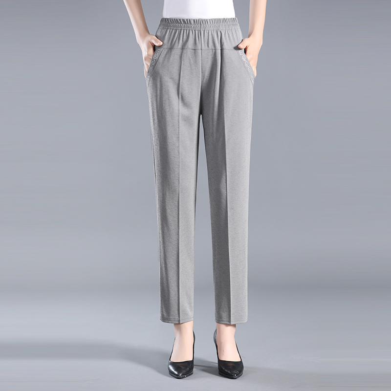 Mom summer thin stretch nine-point pants elastic high waist casual loose middle-aged and elderly female granny straight pants