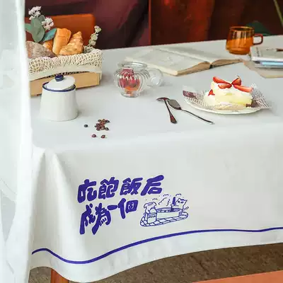 Zuo Xiantun Road Simple text creative literature and art plaid dining table cloth Table mat Decorative fabric Dining table cloth Coffee table tablecloth