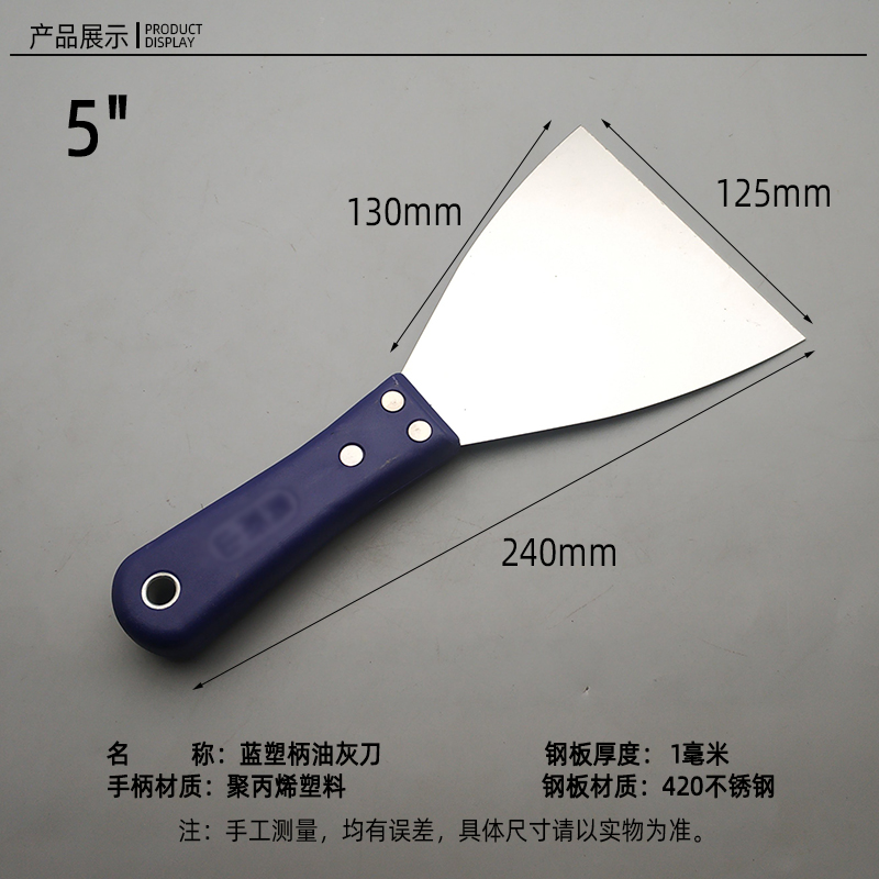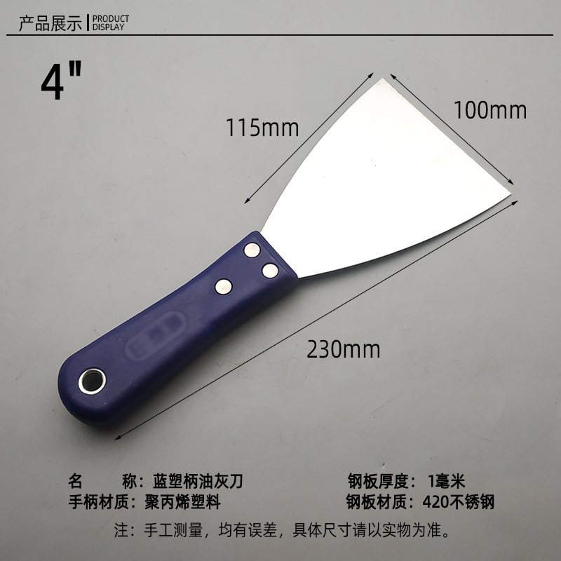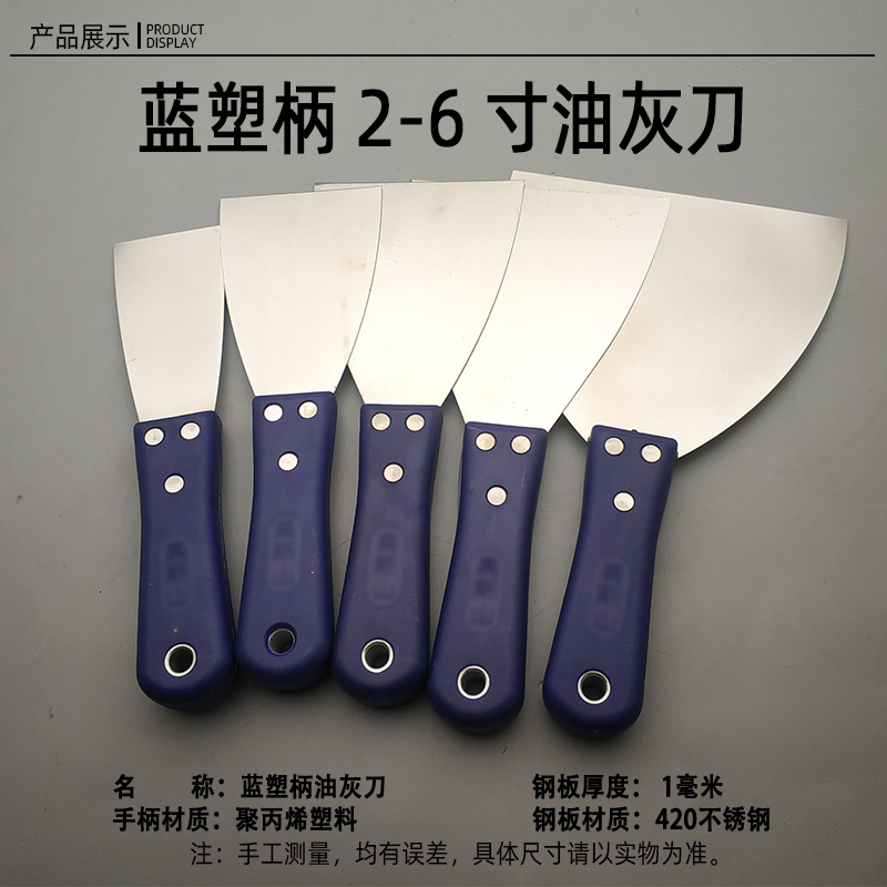 Double color handle carbon steel 5 inch (rusty) double color handle 1 inch (carbon steel) rusty tail putty knife random three blue plastic handle 3 inch 7 5cm (thickness 1mm) blue plastic handle 4 inch 10c