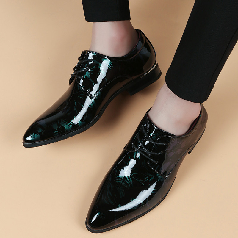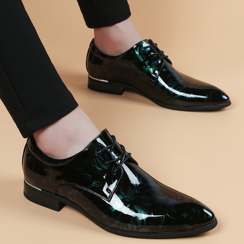 Spring leather shoes Men's Inron Breathable Pointy Nightclub Men's Shoes Youth Han Edition Tide 100 Heightened Hair Stylist Men's Shoes