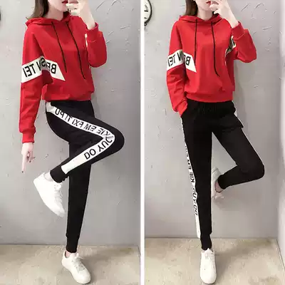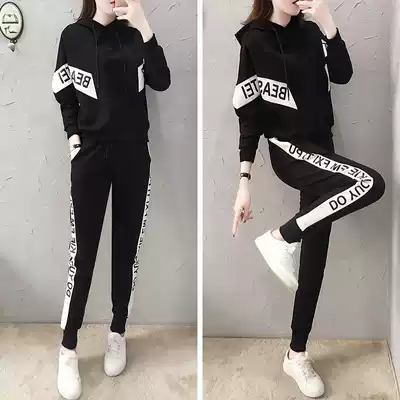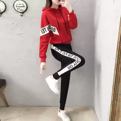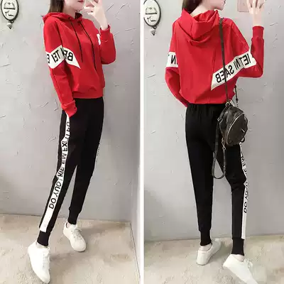 European station spring leisure sports suit female 2021 New Korean version of slim fashion fashion brand sportswear two-piece