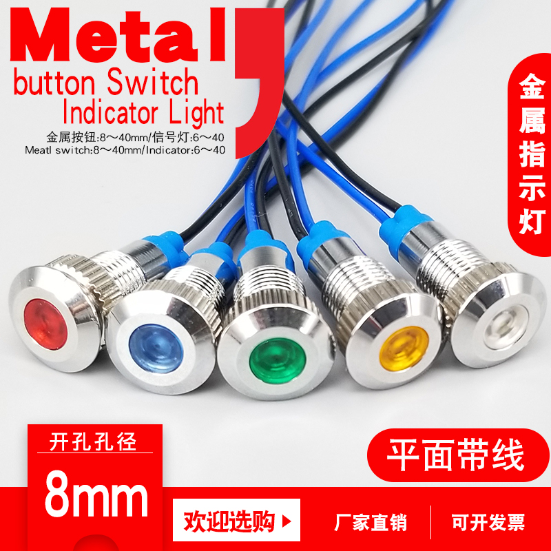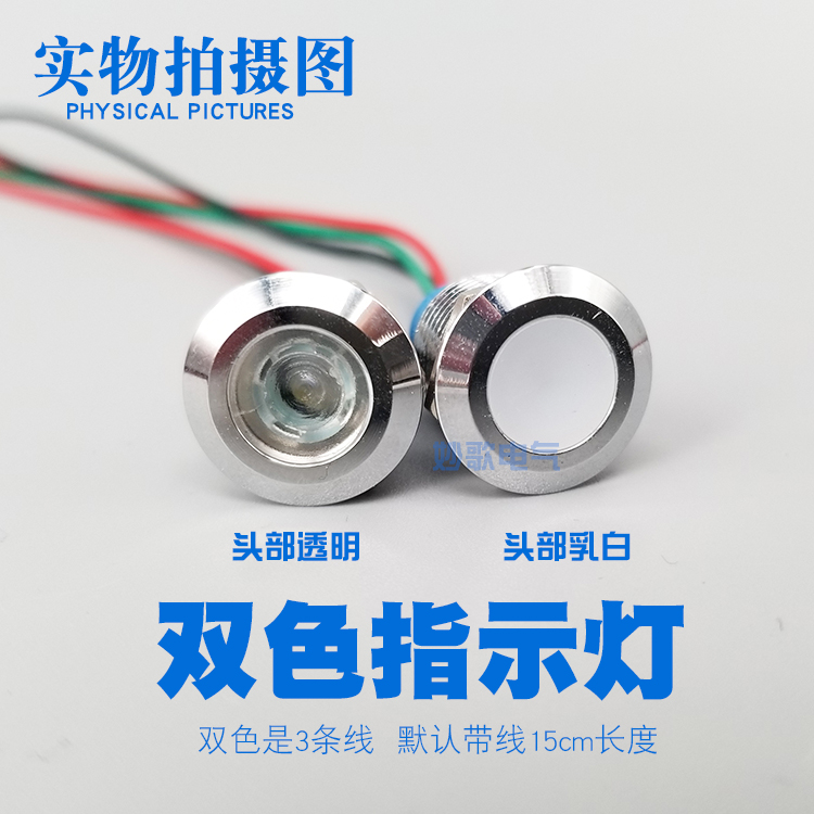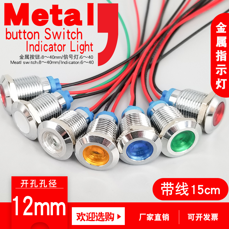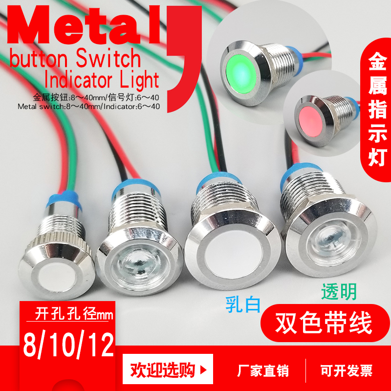 LED metal indicator light 6mm8mm10mm12mm waterproof power signal light with line 6v24v220V two-color light