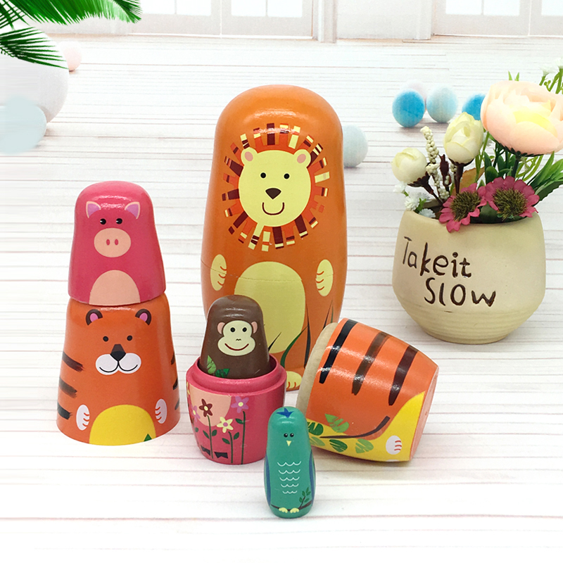 Russian Jacket 5 Floors Cartoon Cute Children's Festival Children Wood Handmade Puzzle Toy Gift Dormitory Furnishing