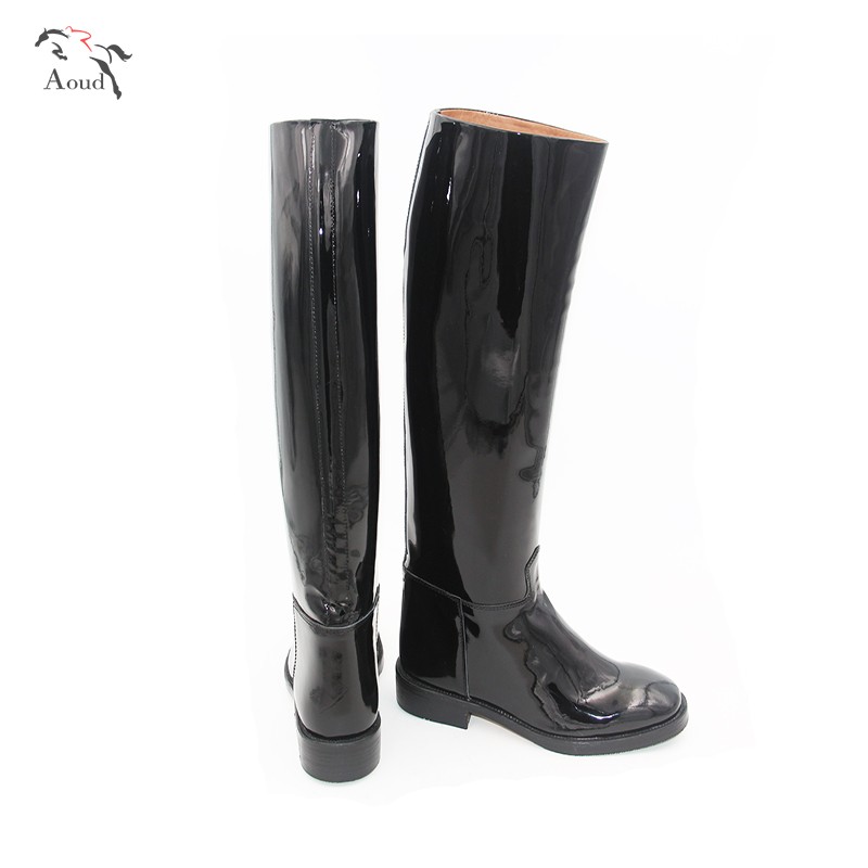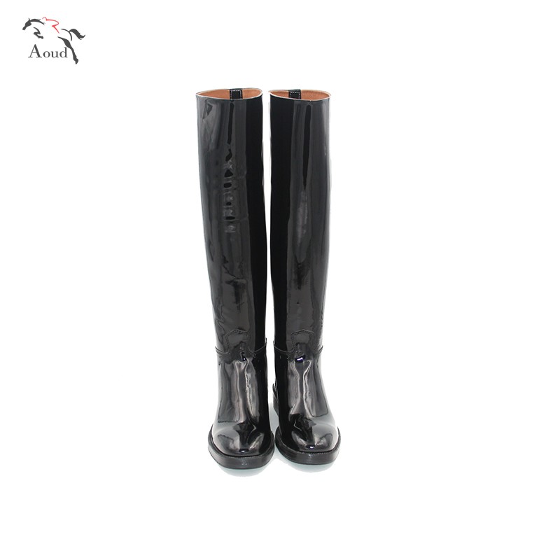 New cowhide patent leather equestrian boots Motorcycle boots Flat mouth Tailor-made riding boots Boots Harness supplies